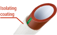 The only pipe with an exclusive isolating coating of closed cell thermoplastic foam. It becomes the ideal pipe for hot water and harsh climate installations. The greatest thermal and mechanical resistance with the smallest outer diameter in the market.